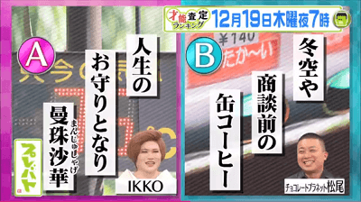 過去の出演者の作を2つ並べてどちらが「才能アリ」かをクイズ形式で判定する模様です。